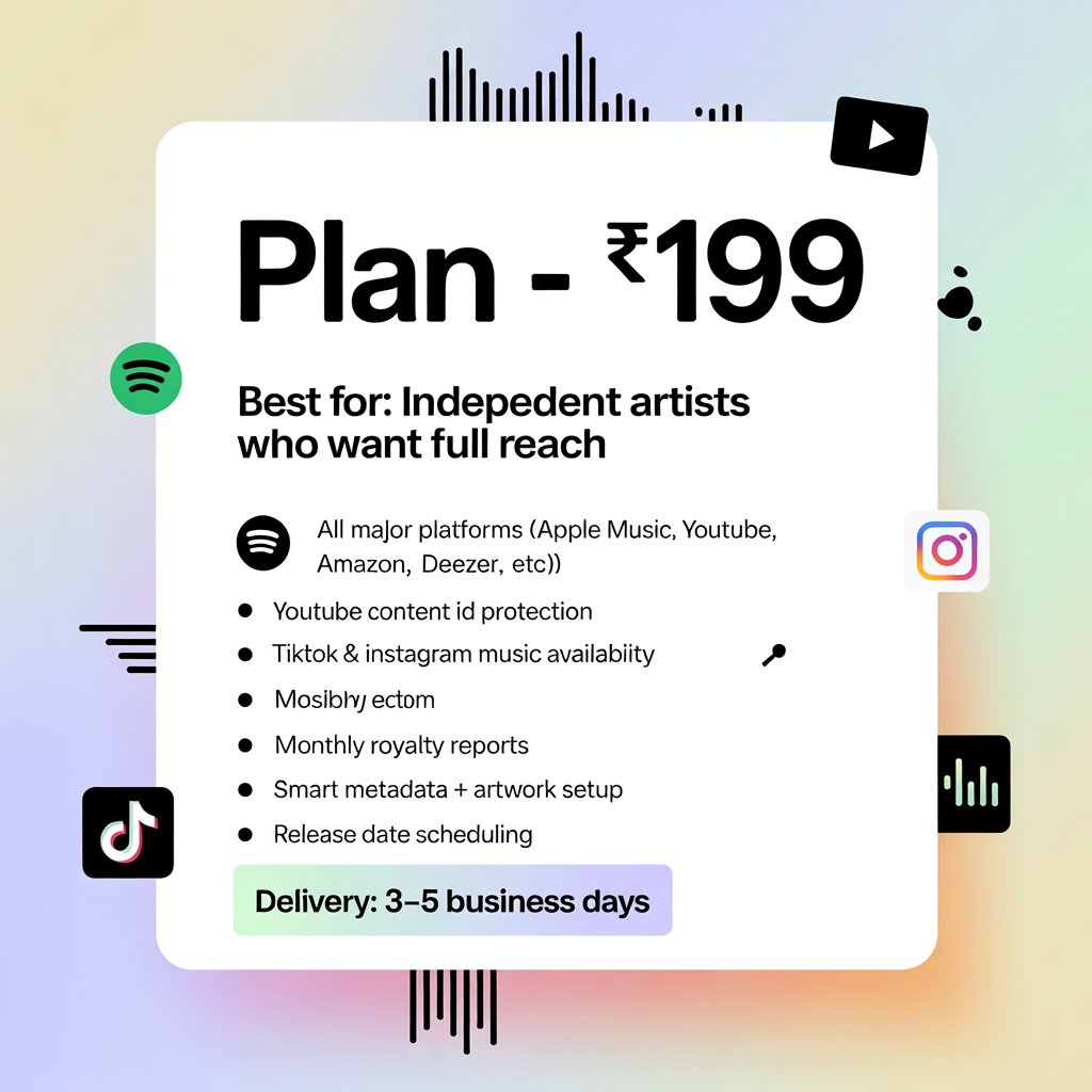This plan also includes YouTube Content ID protection, TikTok & Instagram Music availability, and monthly royalty reports, ensuring your music is heard — and paid for — everywhere. We handle all the setup and metadata so you can focus entirely on your art.